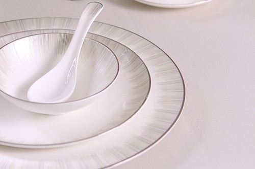 絢爛中求簡約,構圖渾然大氣,彰顯品質感。銀彩流轉,仿佛年華幀幀,能為餐桌營造出現代感的效果,